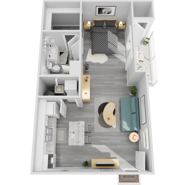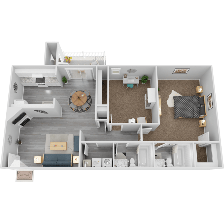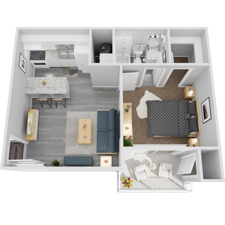 Envision returning to a home that fits your style, with nine unique floor plans from cozy studios to roomy one, two, or three-bedroom apartments for rent. Every apartment is brimming with comforts like cool air conditioning, breezy ceiling fans, a sparkling dishwasher, a cozy fireplace, and the ease of in-home laundry. Imagine relaxing by the fire on a crisp night or breezing through chores without stepping outside.